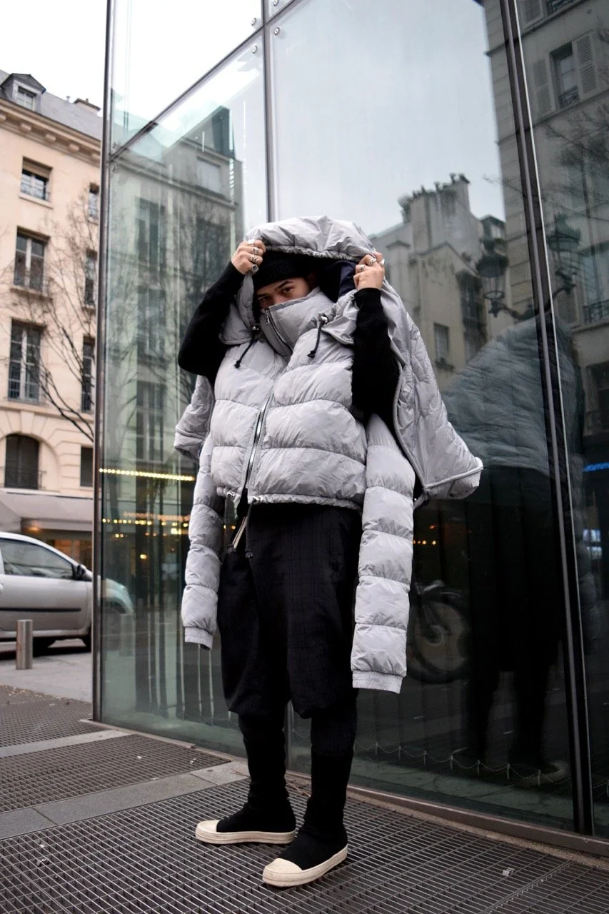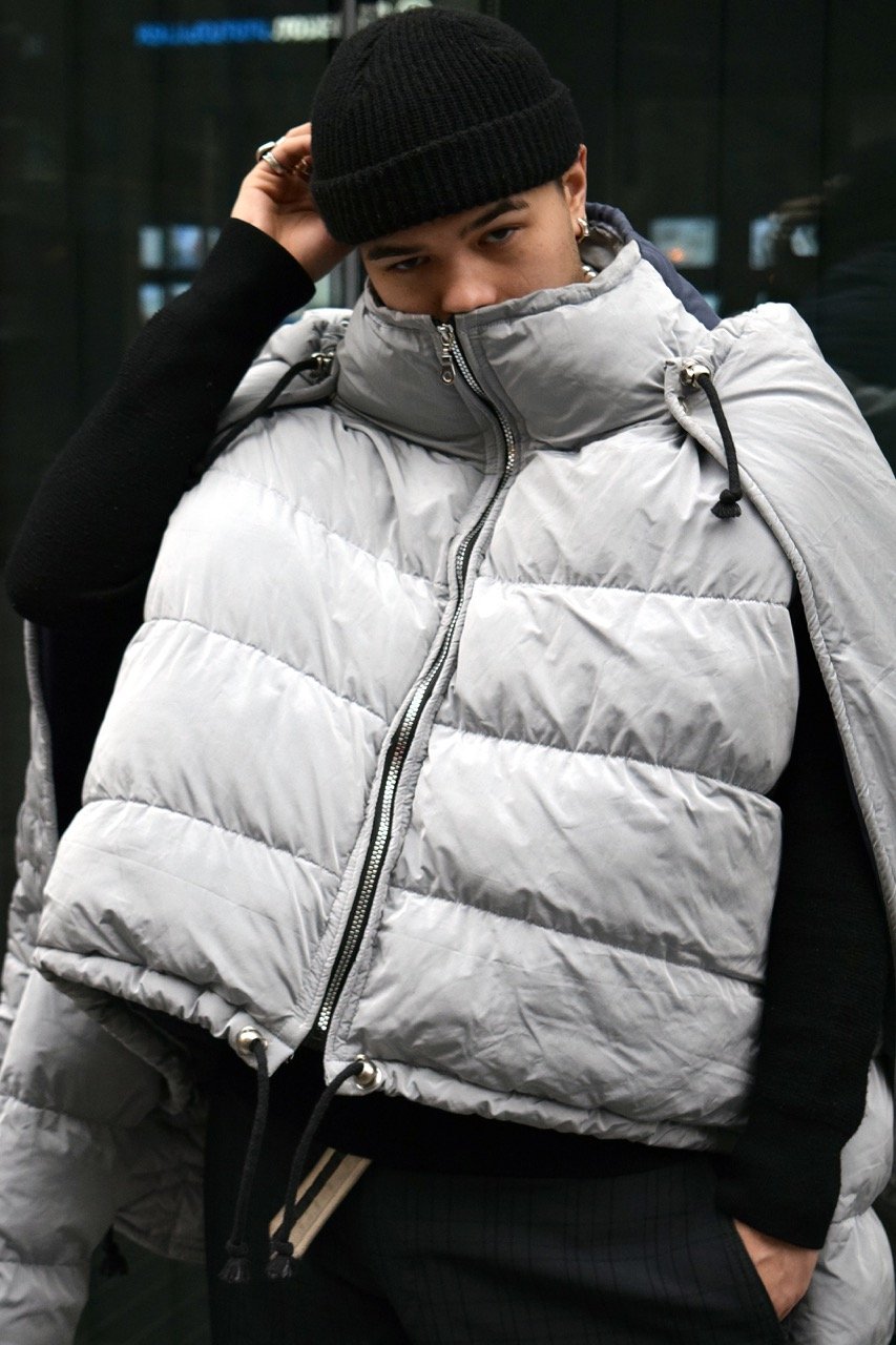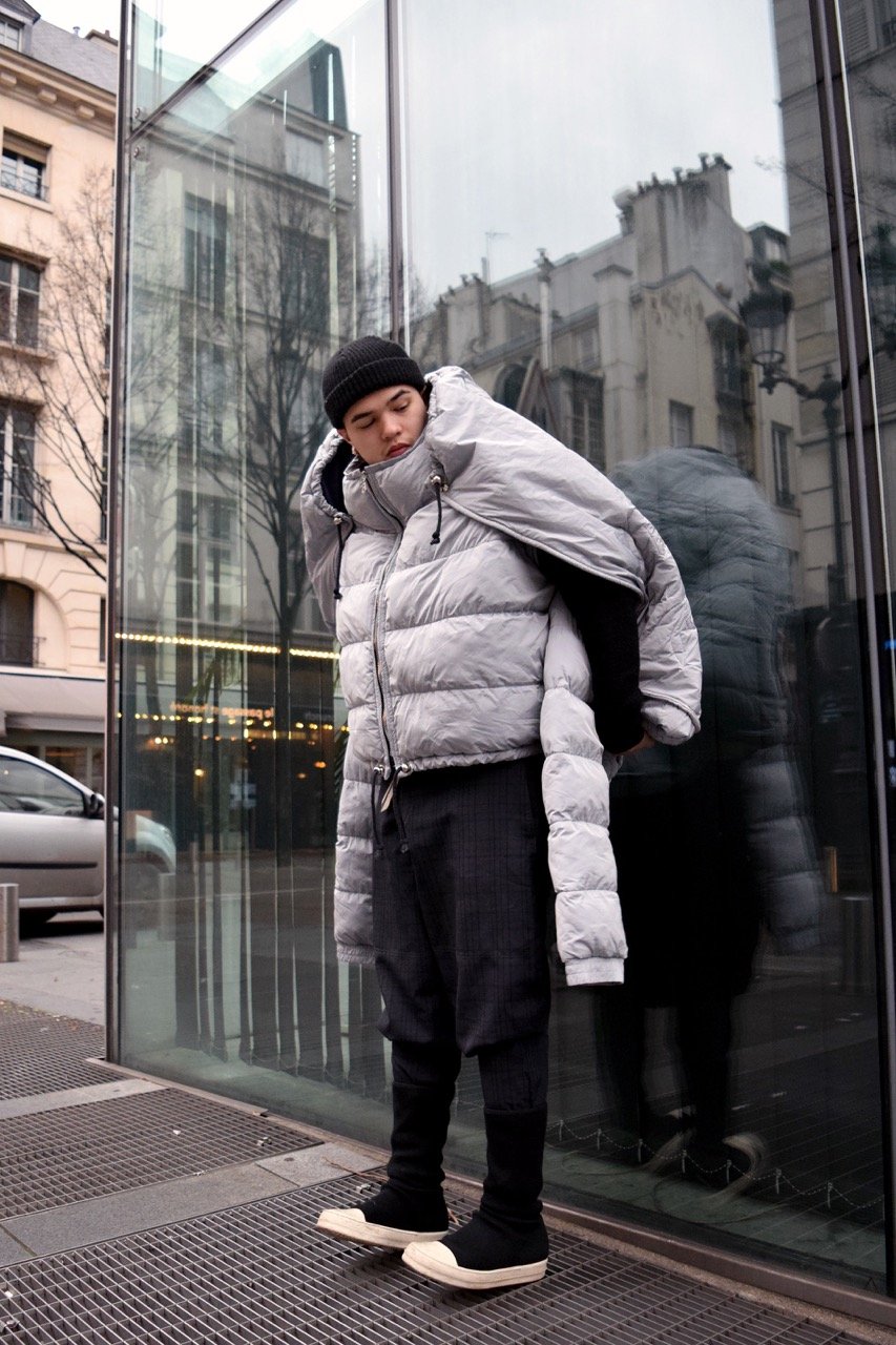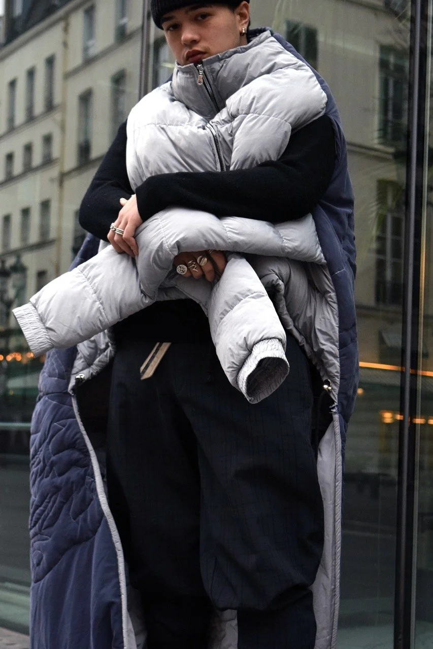 Frameless is a garment based off of the works of Cristobal Balenciaga and Rei Kawakubo. I started off with the silhouette of Balenciaga's fitted jackets with a slim front and a voluminous back. As for Rei Kawakubo, her disregard of the natural human body inspired me to go for an engulfing silhouette and add the illusion of practical sleeves. I intended to make the wearer frameless by eliminating the shoulders and adding significant volume. The back topstitch comes from a tapestry coat I found in Antwerp. The word tapestry is significant to me because that was the name of the street where my most favorite house was. And coincidentally, ту mother loved to cover all of the hardwood floors with tapestry rugs. However, because I'm going for a modern look, I had to modify the tapestry pattern into its simplest form.