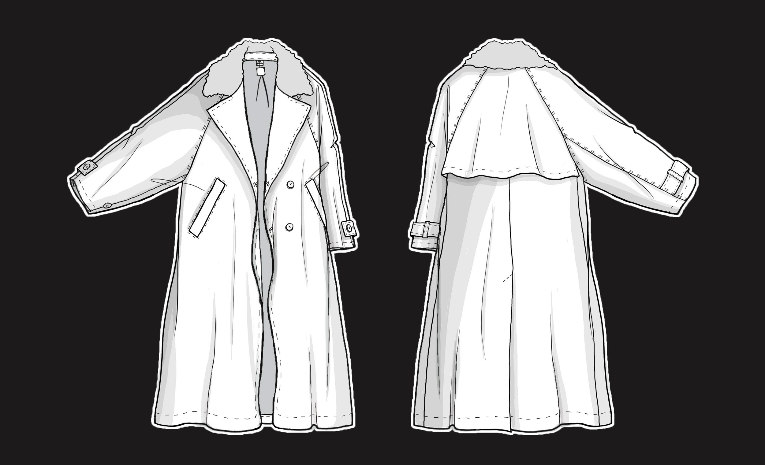 The Need It trench is a classic trench in a peached twill fabrication and an oversized silhouette. Sleeve tabs allow wearer to cinch in the sleeve ends and also customize the collar with a detachable leopard print fur.