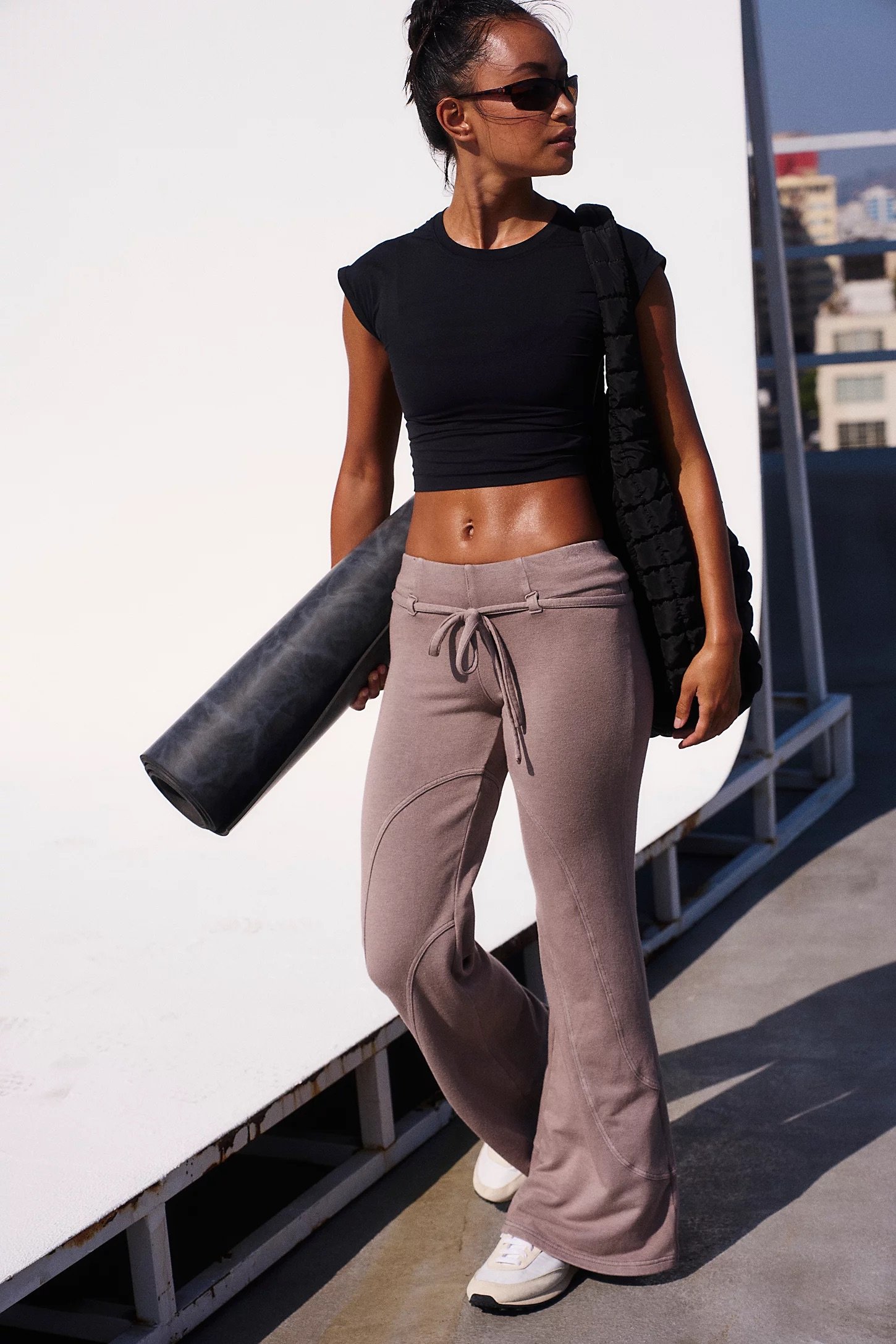 The Swing Around Flare is a low-rise flare pant that is made in a buttery soft and stretchy fabric. She is body skimming with curved seaming throughout for added dimension. The adjustable drawcord is held by belt loops along with a branding patch at the center back.