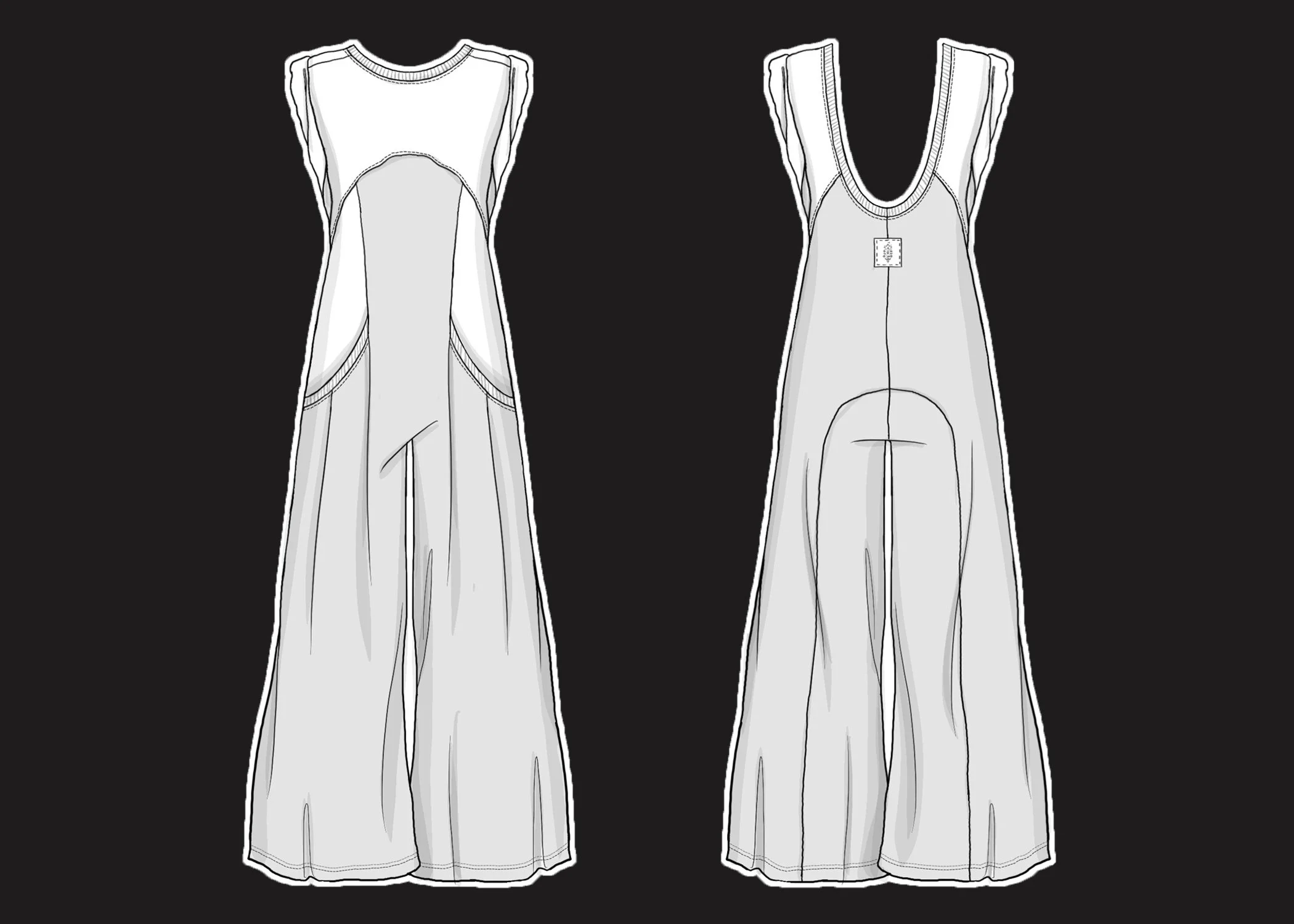 This mixed fabricated onesie is perfect to throw on over any workout fit with its oversized fit and extreme dropped back cutout. The top portion has a jersey muscle tee silhouette with a rolled armhole and an under bust seam that leads to a woven wide-leg pants. Pleats are sewn into the top entry pockets for added volume.